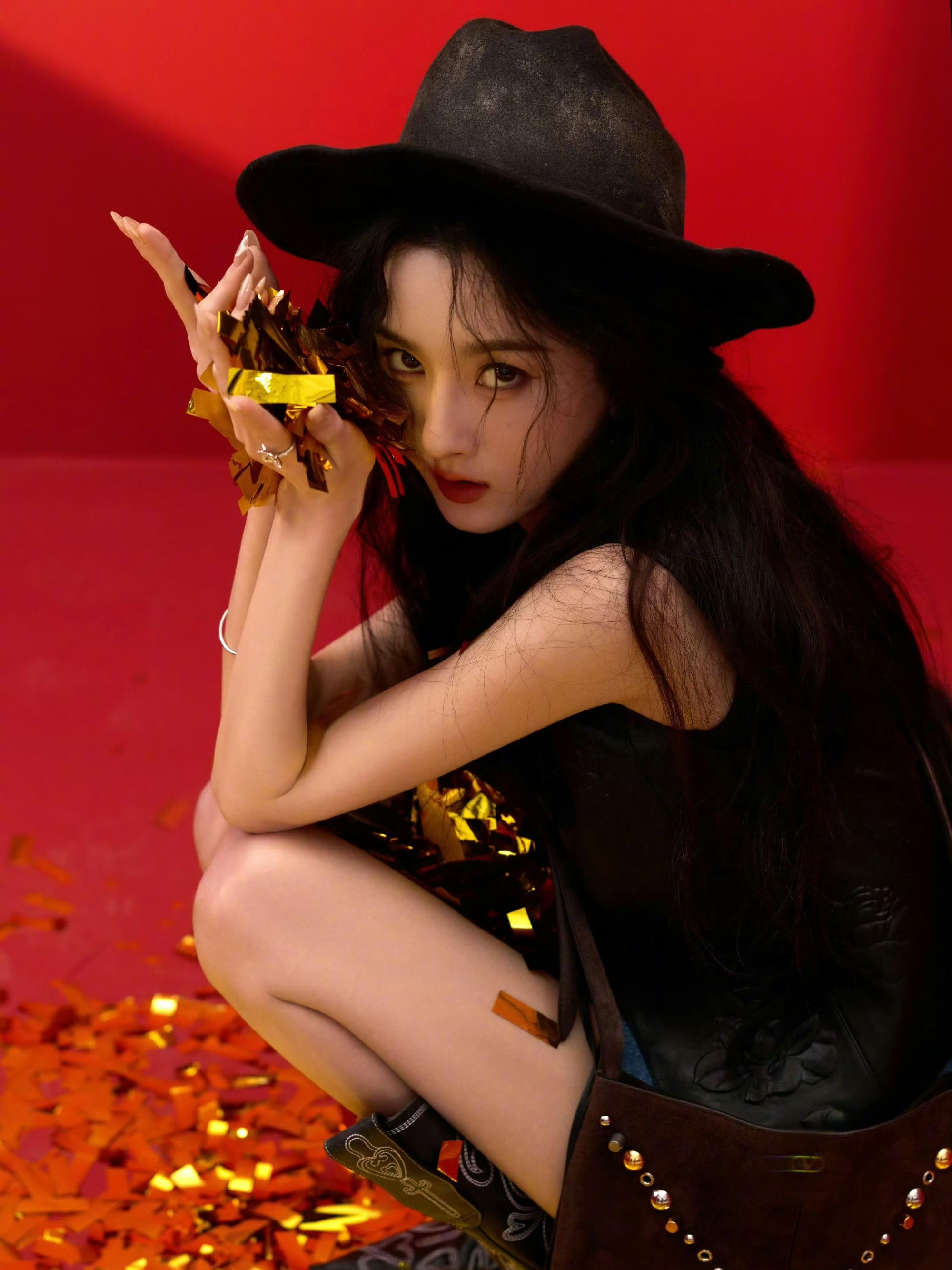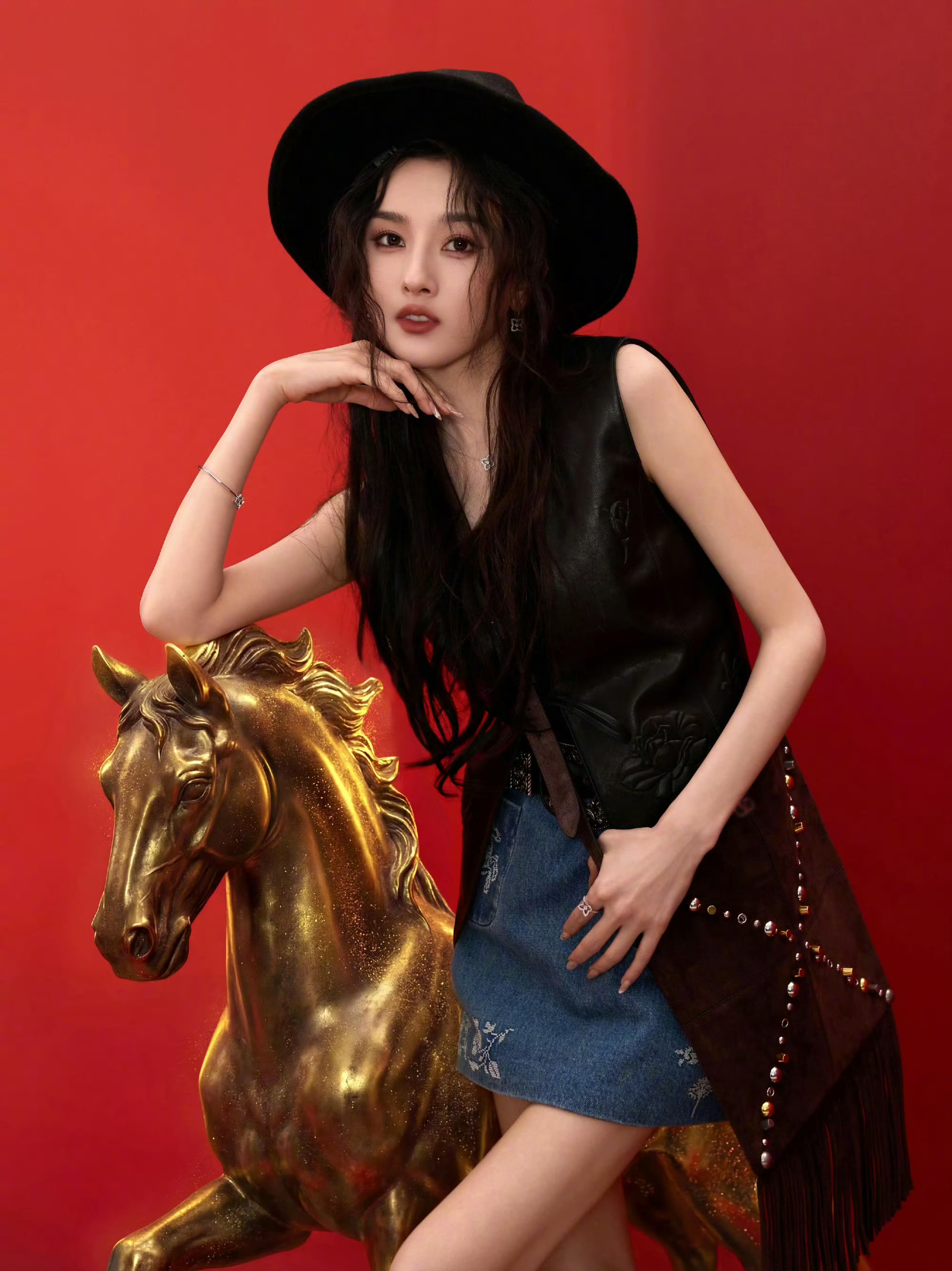 流苏感的铆钉单肩包点睛造型,在红调光影间糅合牛仔摩登与优雅野性,尽显新春飒美风范,这样的造型你打几分呢#宋祖儿时尚穿搭#如何穿出率性和优雅#流苏感造型,流苏感的铆钉单肩包点睛造型,在红调光影间糅合牛仔摩登与优雅野性,尽显新春飒美风范,这样的造型