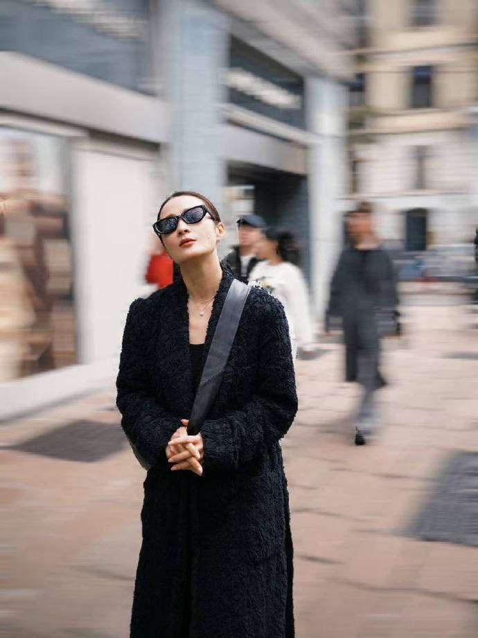 其实,对于蒋勤勤的粉丝来说,她从来就不是那种追求少女感的明星。去年在一场路演中,她的生图被曝光,照片中她顶着淡妆,扎着低马尾,太阳穴的青筋清晰可见,脸上的细纹也都若隐若现,但却依然被网友夸赞美得真实。这次在米兰的街拍更是将她那种松弛感展现得淋漓尽致:一件宽松的黑色西装外套随意地搭在肩上,搭配牛仔裤和短靴,简洁又不失利落,甚至连风吹乱她的发丝,似乎都增添了一种随性、自然的气息。有时尚博主指出,这种不费力的高级感反而是最难掌握的——它要求我们放下对年龄的焦虑,更需要有足够的审美品位,才能驾驭那种简单却独特的搭配。